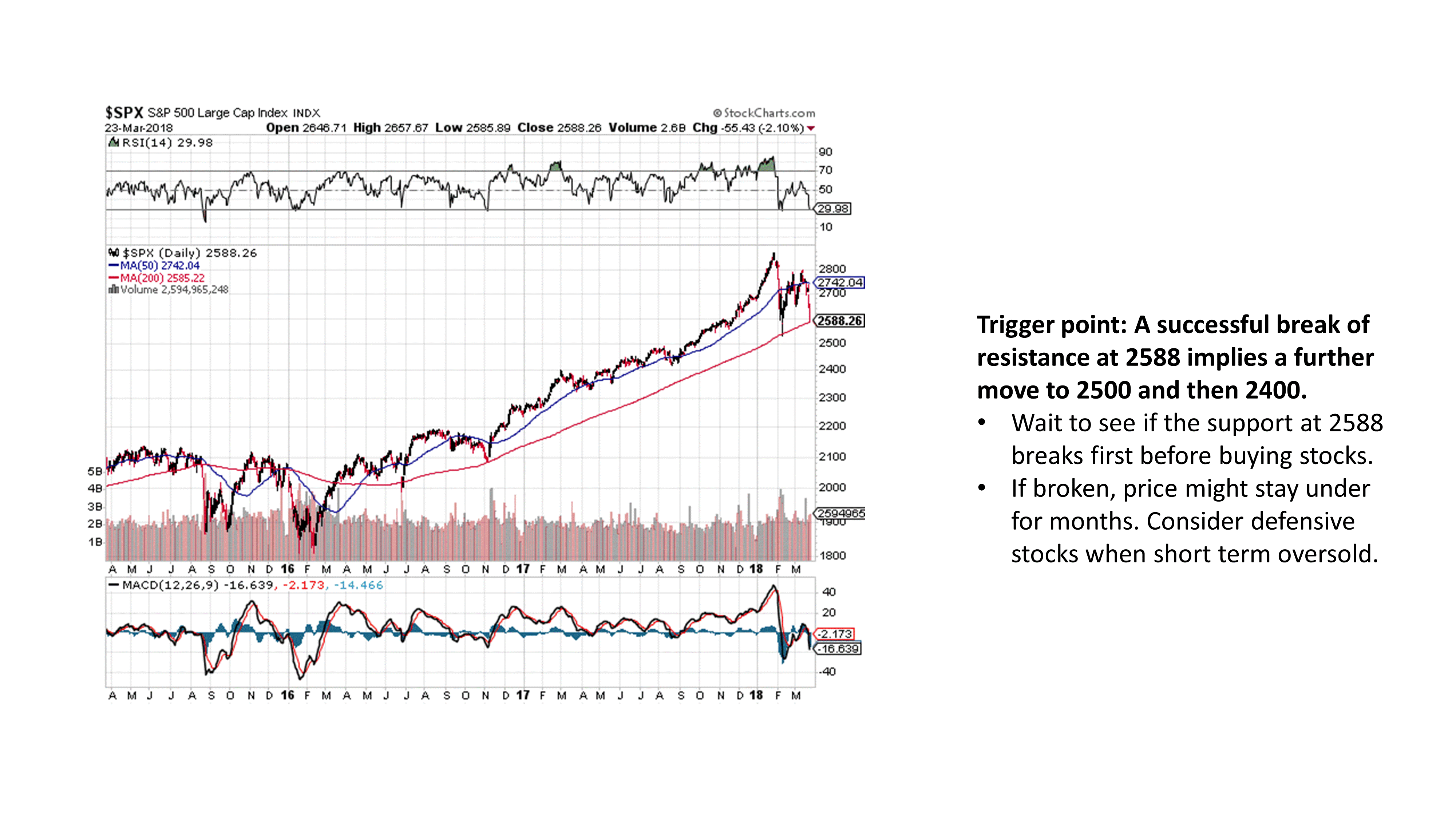 In our last presentation, The US Market Sell Off. Is this the end? on 5 Feb 2018, we advised that the markets were approaching short term oversold, but that history tells us wait before going back in. Sure enough, the price rebounded before pushing to dropping to challenge the Feb low again.